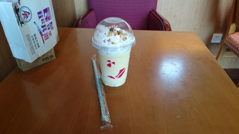 気温が37度を超える暑い日でしたので,コスタコーヒーで作戦会議も兼ねてピーチヨーグルトを飲みます。